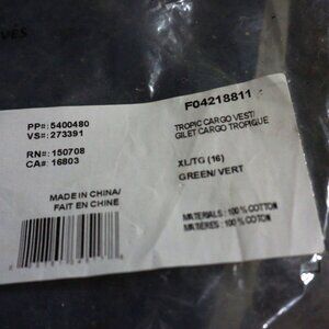 NEW IN ORIGINAL BAG. AVON MARK GREEN TROPIC CARGO VEST ZIPS UP FRONT. 2 FRONT POCKETS AT HEM. LENGTH IS 31" ELASTIC AT WAIST IN BACK. SLEEVELESS