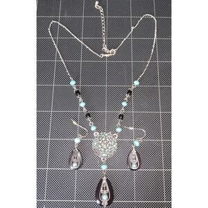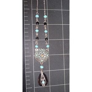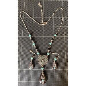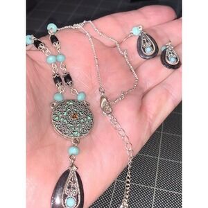 AVON Necklace & Pierced Earrings Mixed Set Marked NR Bohemian Medallion Aqua