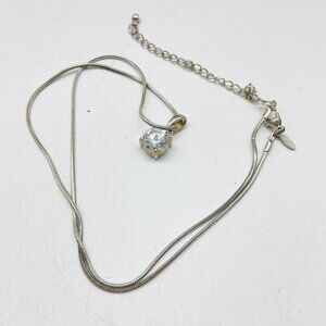 AVON Pendant Necklace Clear Faceted Crystal Silver Tone Signed