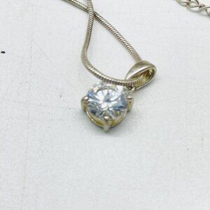 Elegant Avon necklace featuring a sparkling faceted clear crystal pendant on a silver-tone chain.