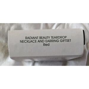 AVON Radiant Teardrop Necklace & Earring Gift set Gold tone with Ruby Red Faux Stone & Rhinestones.