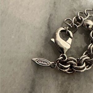 The AVON Signed Silver Plated 2 Layer Rhinestone Choker is a stunning statement necklace that features a layered design with clear rhinestones. The necklace is 18 inches in length with a 3-inch extender, making it versatile for various outfits. The silver plated metal adds a touch of elegance, while the rhinestones give it a glamorous look. Perfect for those who love bold and eye-catching jewelry pieces.