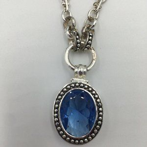 AVON Silver Plated (SP) Faceted Aqua Blue Rhinestone NECKLACE, 2003