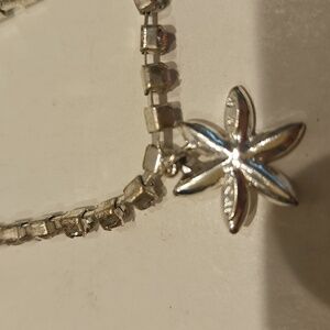 This elegant silver bracelet features a charming flower pendant, perfect for adding a touch of sophistication.