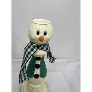 AVON Snowman Candleholder 2002 Country Snowfolks Snowman 9”
