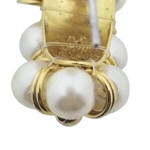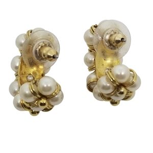 Beautiful vintage earrings by Avon. Earrings are from the 1996 Pearlesque collection. Earrings are goldtone and faux pearl with a huggie half hoop design. They have stud backs and measure 1 inch tall and 1/2 inch wide. Earrings are stamped NR Avon on the backs. Good condition.