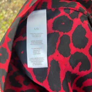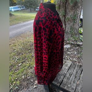AVON VINTAGE 90S RED SHEER BUTTON UP TOP WITH BLACK CHEETAH PRINT WOMENS LARGE