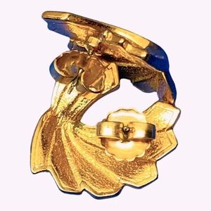 A Beautiful Avon Vintage Draped Elegance Pierced Earrings Lapis Enamel Goldtone.