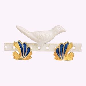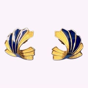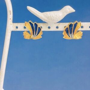 AVON Vintage 1990s Draped Elegance Pierced Earrings Lapis Enamel Goldtone