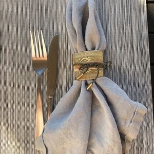 AVON Expressions Set of 4 Napkin Rings, gold jacquard, New! Stunning in their simplicity but will complete a very ellegant and festive table setting of 4.