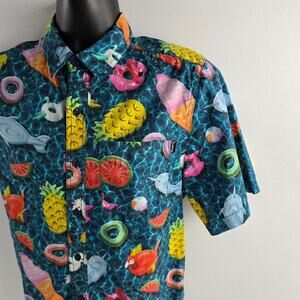 AVU Men’s Button-Up Shirt Small – Short Sleeve Summer Print Hawaiian Aloha Party