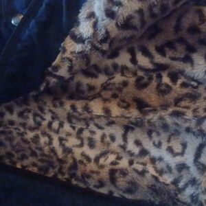It's a short dress 2 pocket leopard inside furry.Very compvery comfortable zippered in the front two pockets blue and leopard