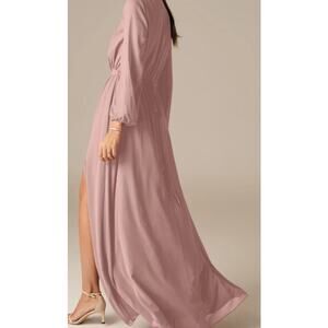 AW BRIDAL 10 L pink dusty rose Adelle chiffon bridesmaid maxi dress NEW B102