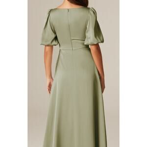 AW BRIDAL 2 XS fennel seed green Etta satin formal bridesmaid maxi dress NEW b85