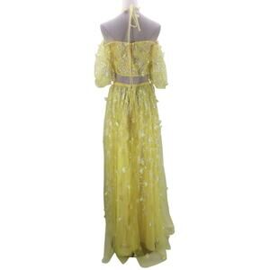 AW BRIDAL 8 M yellow 3d floral shimmer sequin prom maxi 2 pc set dress NEW B49