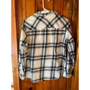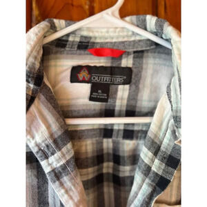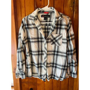 Keywords: plaid shirt, flannel, button down, checkered, black and white, VF Outfitters, casual shirt, grunge, layering piece, winter fashion, fall clothing