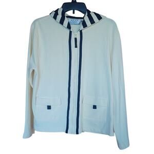 AW Sport Allyson Whitmore Zip Up Hoodie Butter Yellow Blue Stripes Women's Large