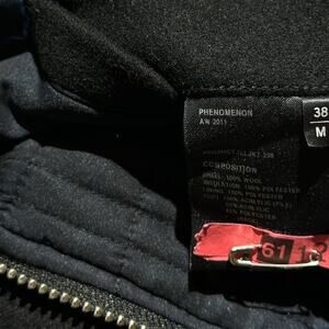 Heavyweight deep black wool thick jacket with a perfect boxy crop fit, fur lined zippered hood, double closure, realistic lightning graphic inside, padded inside.