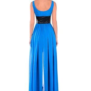 BLACK FAUX LEATHER TOP W/ BLUE SILK BACK TAIL
