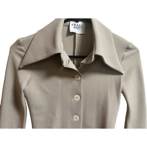 A.W.A.K.E. AWAKE MODE Beige Pointed Collar Button-Front Blouse - Size 34EU/Small