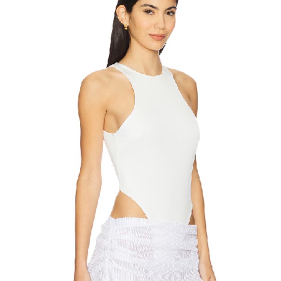 Halter neck bodysuit, sheer maxi skirt in fine sequin with pile detail.