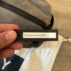 A discontinued original AWAY release in a rare grey suede with black leather trim. This dopp kit is an OG favorite for AWAY fans, now replaced in their lineup by the Toiletry Bag. It is in pristine brand new condition with original dust bag and tags included.