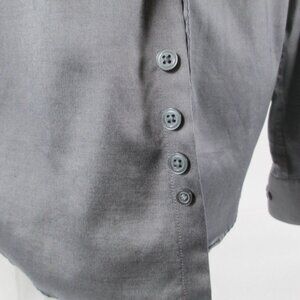 Smoke grey 100% Cotton with a silky, polished finish. 3 extra buttons for front or cuffs.