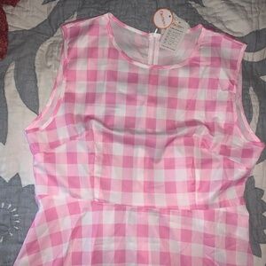 Step into a summer daydream with this Amazon/AWIBMK pink gingham sleeveless swing dress, a nod to the charming 1950s. In size 2XL, this dress gracefully captures the essence of vintage elegance with its flared silhouette, perfect for twirling through the golden moments of a hot summer day. Measuring approximately 38" long, it’s designed to fit beautifully, though it may kiss the ground more tenderly if you’re petite 🌼.