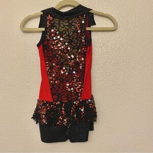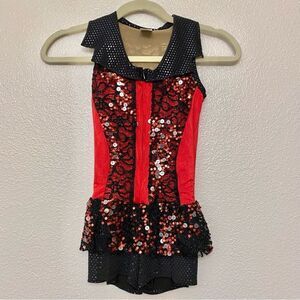 A Wish come true Dance costume red biketard full zip sequin jazz tap child IMC