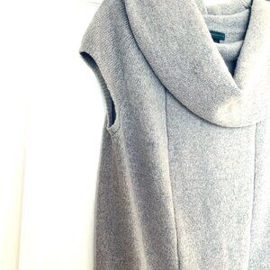 Grey sweater knit with subtle silver threads in this versatile garment. Cowl neck, two lower pockets and a low rise drawstring to allow blousing up or not. This is one of those unique pieces where you decide the vibe, dross or top and accessorize accordingly.
