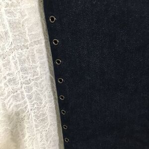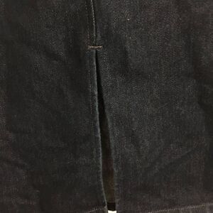 Dark denim pencil skirt with side loopholes design. Front zipper closure. Back slid. Pre-owned in good condition. Please refer to pictures for best description and condition verification.