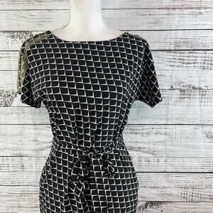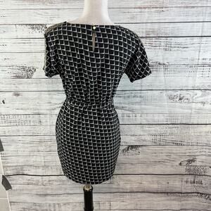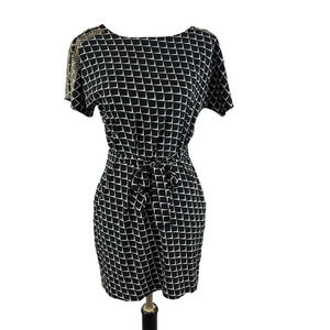 AX Armani Exchange Dress size 0 Black Ivory Gold Studs Stretch Dinner Cocktails
