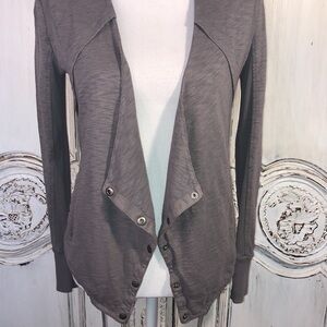AX Armani Exchange Gray Cotton Knit High Back Hem Long Sleeve Lightweight Jacket