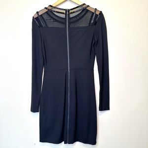AX Armani Exchange Little Black Dress Mesh Beaded Shoulder Embellishments Entire Backside Zip Up Long Sleeve Comfy Bodycon Holiday Mini Dress