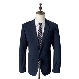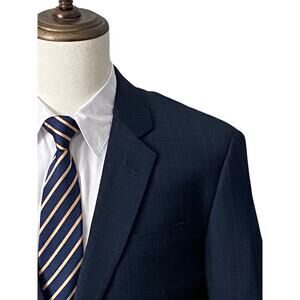 AX Armani Exchange Men's 46R Blazer Wool Blend Stretch Navy Window Pane New