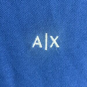 Elevate your casual style with this sharp AX Armani Exchange polo shirt. The vibrant blue hue offers a refreshing pop of color, while the iconic white embroidered AX logo on the chest adds a touch of designer sophistication. Contrast white trim on the collar and sleeve cuffs provides a clean, classic finish. Perfect for a relaxed weekend outing or a smart casual office environment.