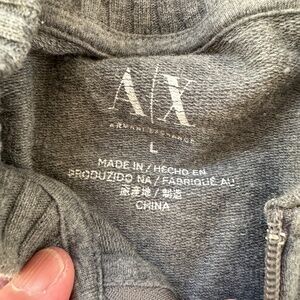 A/X - Armani Exchange Men's Sweater is a stylish and comfortable full zip sweater designed for men. Made from a blend of spandex and cotton, this sweater features a crew neck neckline and a size LARGE in a sleek grey color. Perfect for casual or smart-casual outfits, this sweater embodies the luxury and sophistication associated with the Armani Exchange brand.