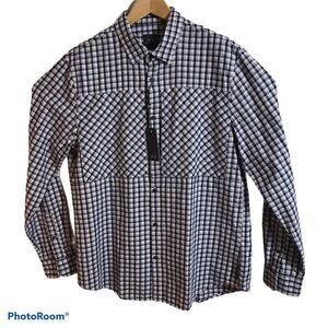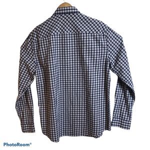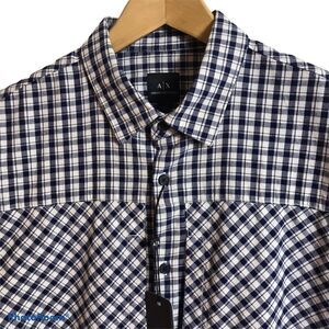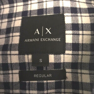 A|X Armani Exchange Shirt Mens Small Cotton Navy Check Long Sleeve Paneled $85