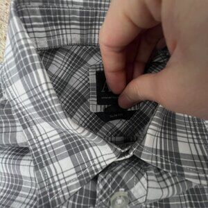 AX Armani Exchange Short Sleeve Button Up Shirt Small Slim Fit Cotton Gray Plaid