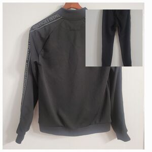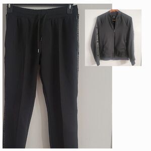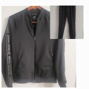 Elevate your everyday style with the A/X Armani Exchange Logo Jogger Set. Designed for the modern man, this size small ensemble features a sleek black color and is crafted from a comfortable knit blend of polyester and elastodiene. The joggers boast a versatile athletic fit with a mid-rise waist and tapered leg style, ensuring a snug yet relaxed fit that's perfect for a range of occasions. Details such as the adjustable drawstring waist and practical slash pockets add functionality to these joggers, making them ideal for casual outings, travel, or even a cocktail party. The solid pattern and subtle zipper accents keep the look sharp and preppy, while the flat front design maintains a streamlined silhouette. Whether you're hitting the city streets or enjoying a college event, these joggers offer both style and comfort for any fall, spring, or winter adventure.