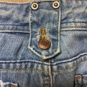 - Distressed AX jeans, bootcut jeans with a little flare, and nice copper color button detail, see video and pictures