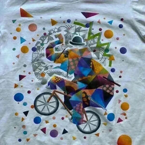 Armani Exchange street art tee. Elephant riding a bicycle, size XS