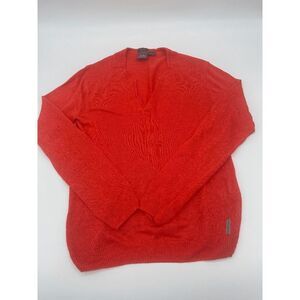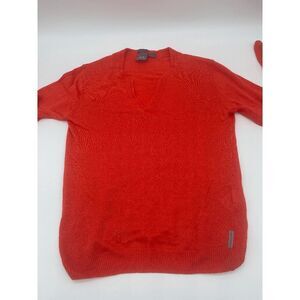 AX Armani Exchange Linen Top V Neck Long Sleeves Collared Sz S Orange