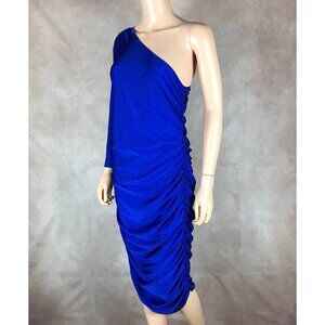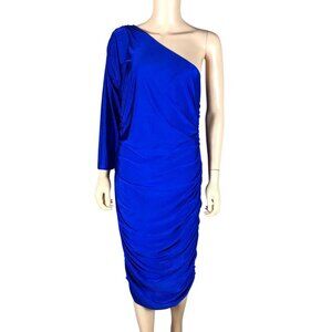 AX PARIS Blue One Sleeve Slinky Ruched Midi Dress NWT
