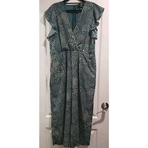 AX Paris Green Spotted Wrap Jumpsuit Size 16 MSRP $84
