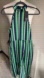 AX Paris | Womens Green Navy Striped Satin Halter Dress w/ Waist Tie - Size 14