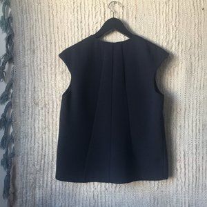 Sleeveless textured shell from Armani Exchange. Stitch details at back neck. Fully lined. V-neck.