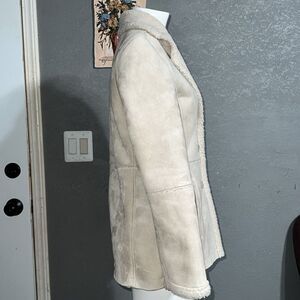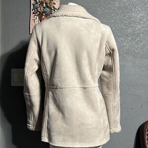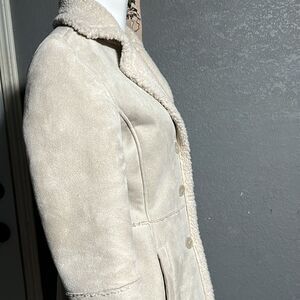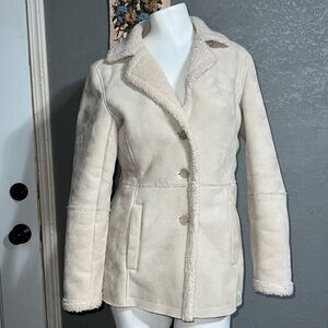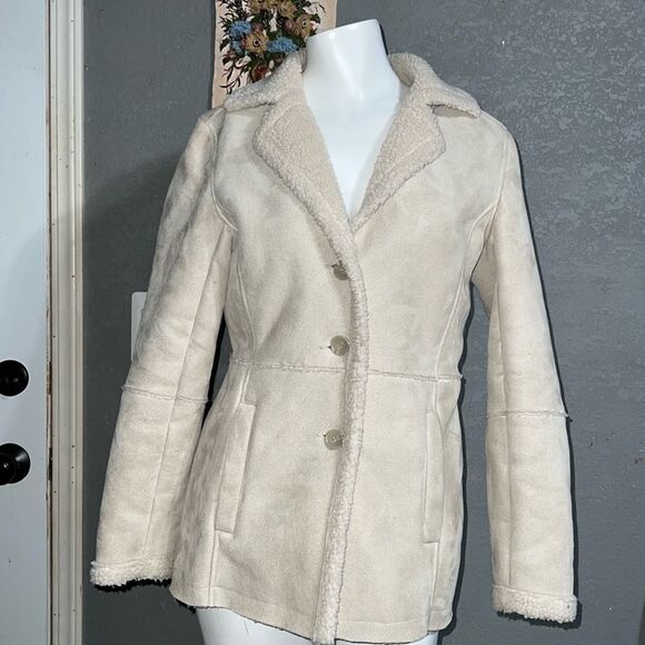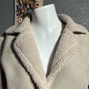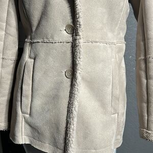 AXARA New York Women's Faux Leather Button Down Jacket, S beige color