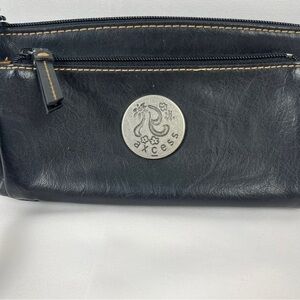 AXCESS Liz Claiborne Vegan Leather Wristlet Wallet Black 8.5" x 4.5" Y2K Retro