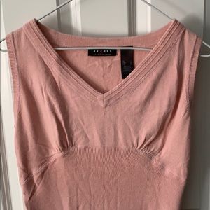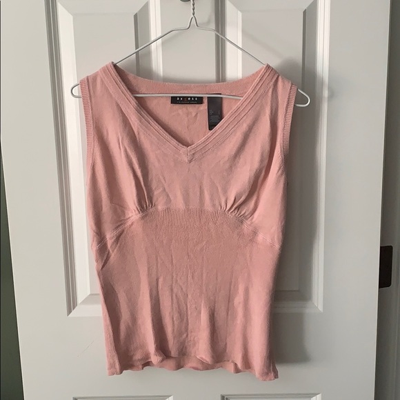 Light pink V-neck top with cinching below the bust. Made with 55% cotton. Made from a Liz Claiborne company.